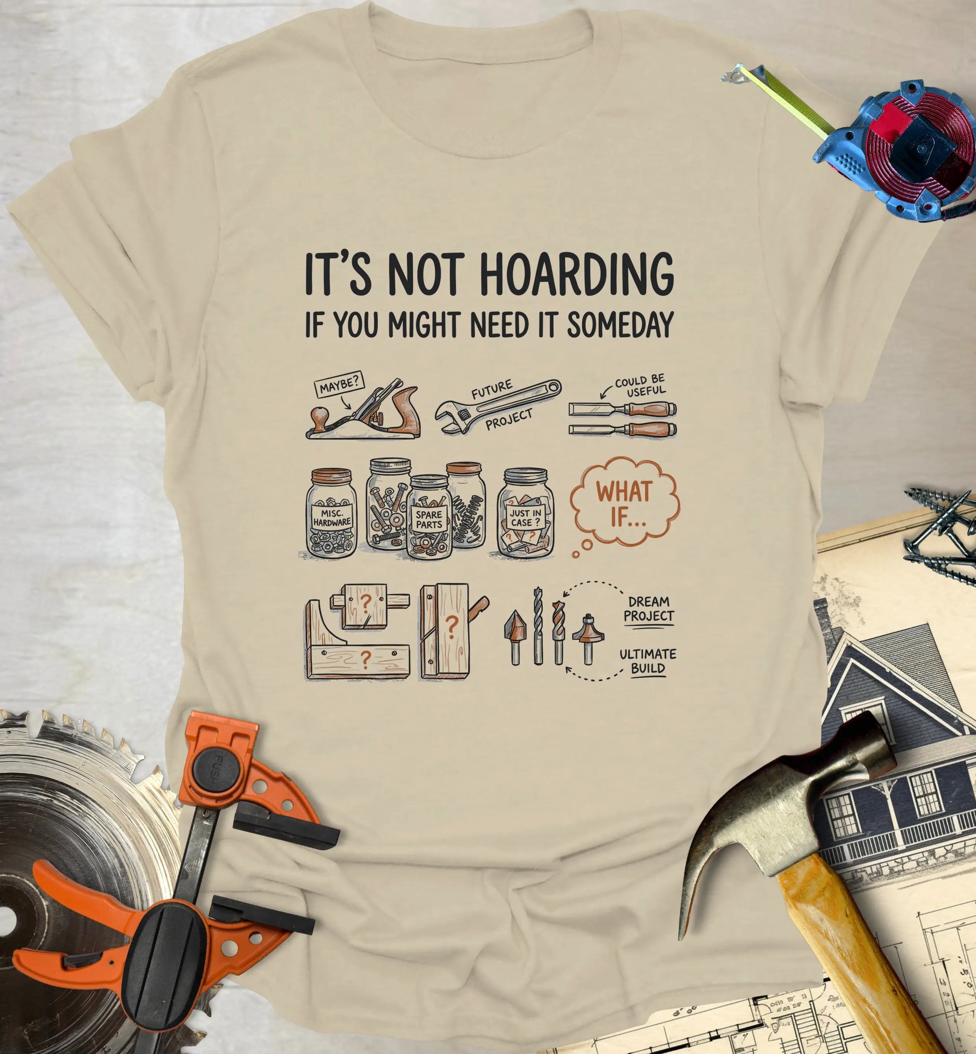 Our shirts are made for makers—whether you’re a seasoned woodworker, weekend DIYer, or just someone who appreciates the smell of fresh-cut lumber. If you’ve ever measured twice and still cut wrong, you’re in the right place.