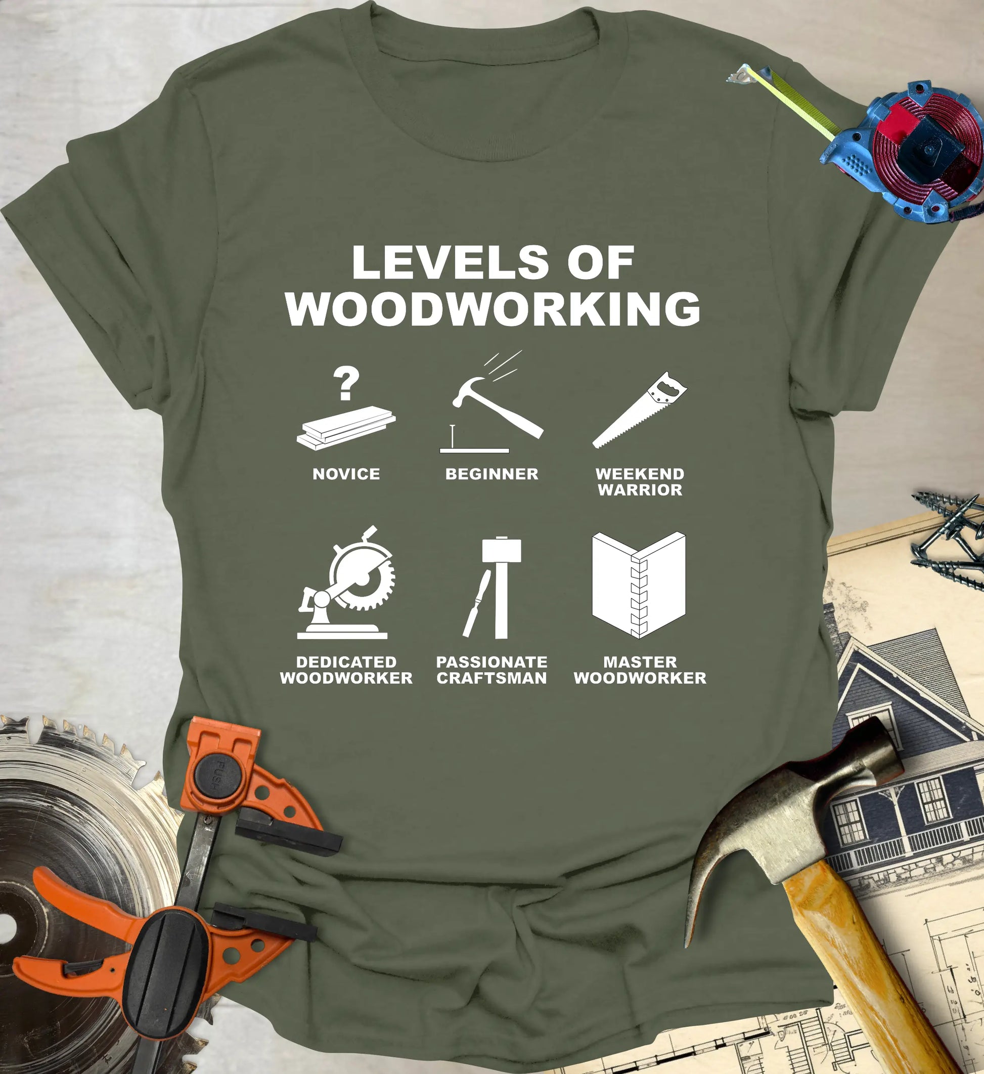 Our shirts are made for makers—whether you’re a seasoned woodworker, weekend DIYer, or just someone who appreciates the smell of fresh-cut lumber. If you’ve ever measured twice and still cut wrong, you’re in the right place.
